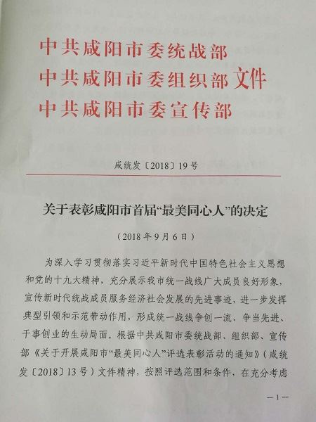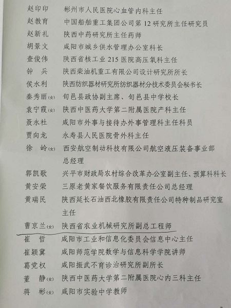 陜西省農(nóng)業(yè)機械研究所副總工程師、質(zhì)檢總站副站長、高級工程師曹京蘭同志榮獲咸陽市首屆“最美同心人”榮譽稱號。